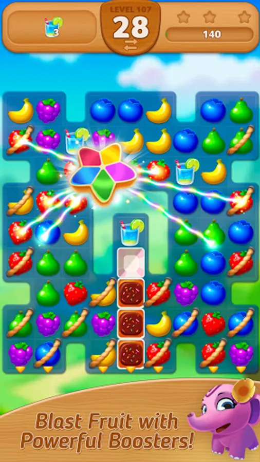 To play, simply wipe and match 3 or more fruits to collect them and complete each level. Use powerful boosters to help you out and enjoy a variety of missions, from defeating crocodiles to catching mice. Achieve 3 stars to earn more coins and climb the leaderboards.