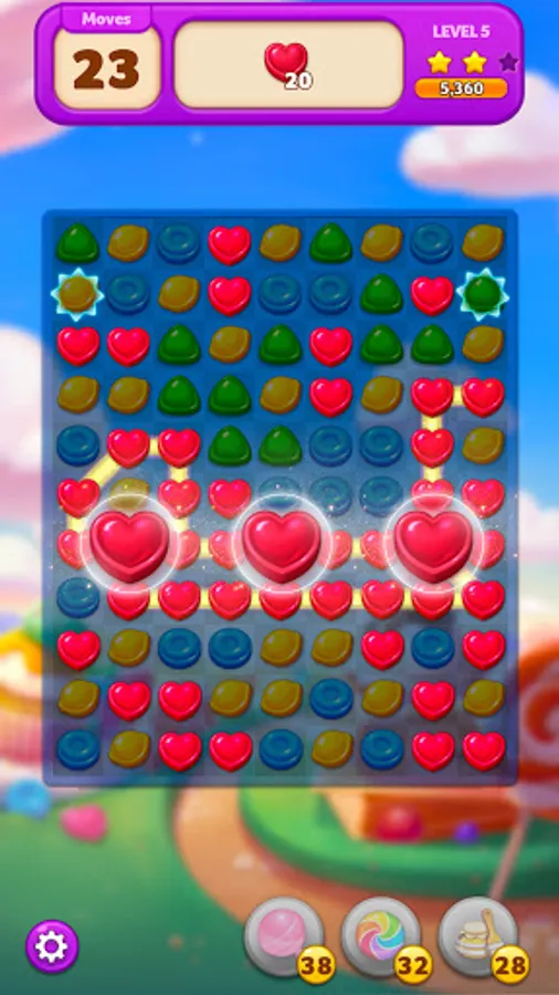 Match 3 or more candies to collect the tasty treats. But don’t stop at 3, connect as many candies as you can! Match and collect treats to make combos and get special boosters!