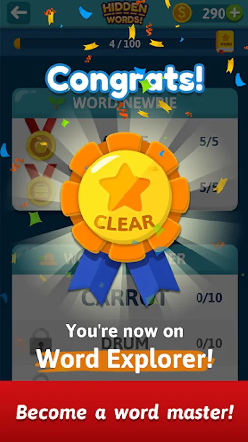 • Collect 6 Hidden Words and earn bonus coins!