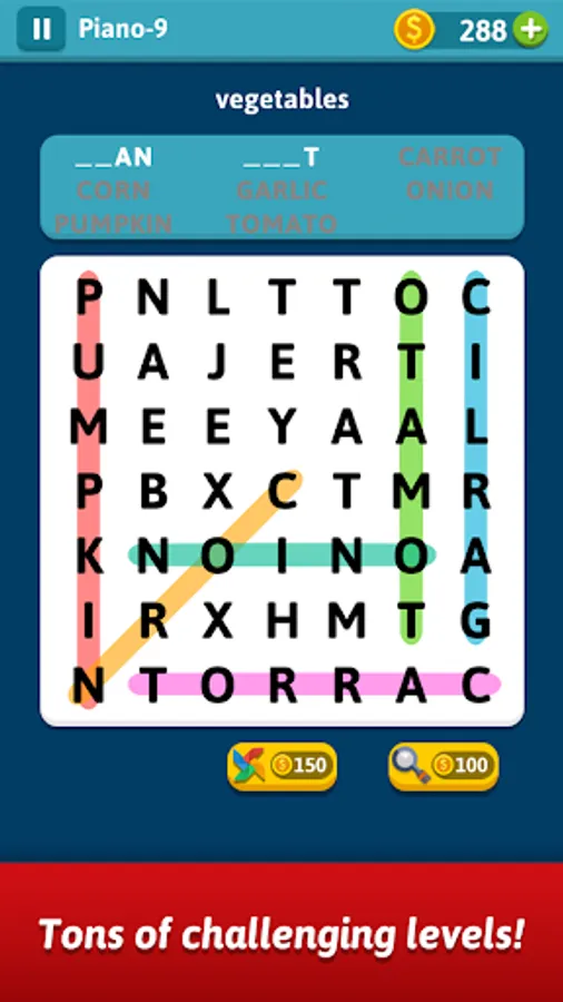 • Swipe up, down, left, right or diagonally to search for given words