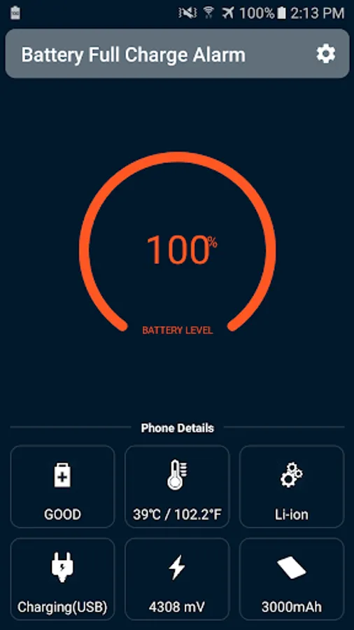 Battery full charge alarm is application notifies you with clear and attractive sound when your mobile battery will fully charge