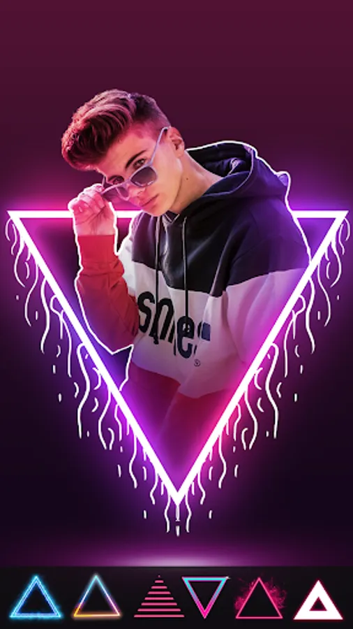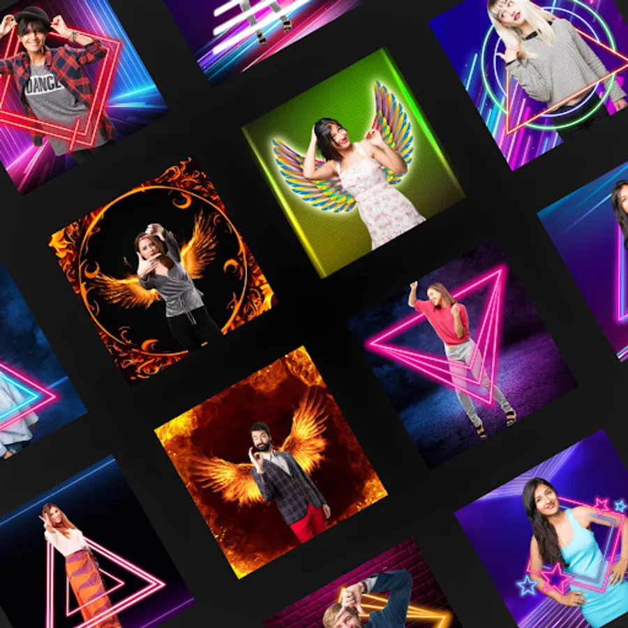 Make your photos glow in the dark with mesmerizing neon effects. Unleash your creativity with epic spirals made of emojis and flowers, or experiment with beautiful geometric spirals like circles and triangles to craft stunning digital art. Dive into a world of astonishing Drip, Spiral, Wings, Rainbow, Neon Fire, and Graduation Effects, and transform any background into a cyberpunk masterpiece with neon brilliance. Complete your magic photo editing journey with a cool neon frame for an added touch of sophistication.
