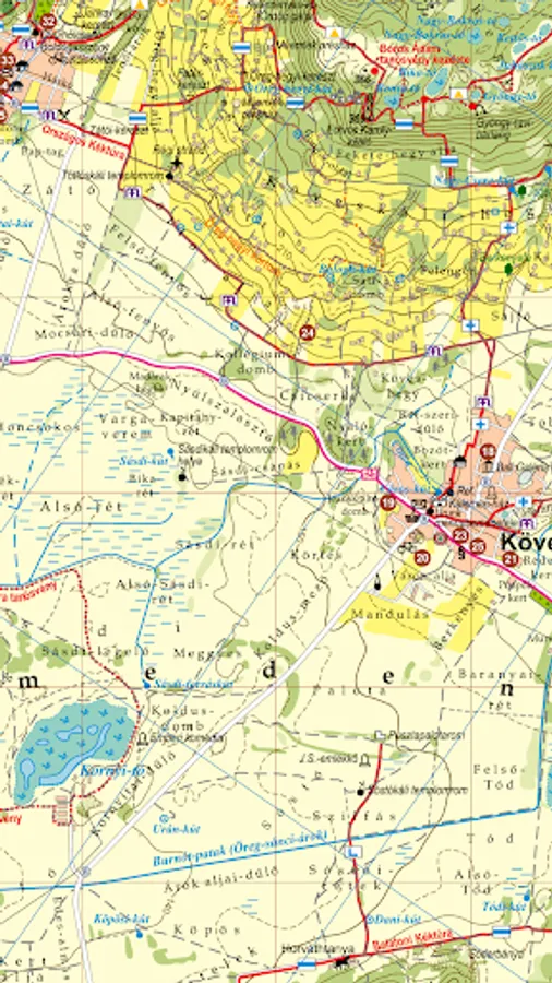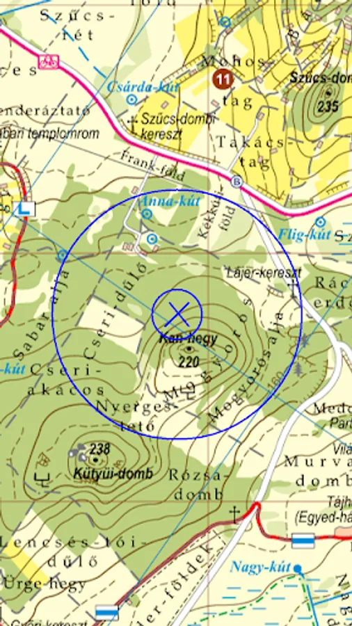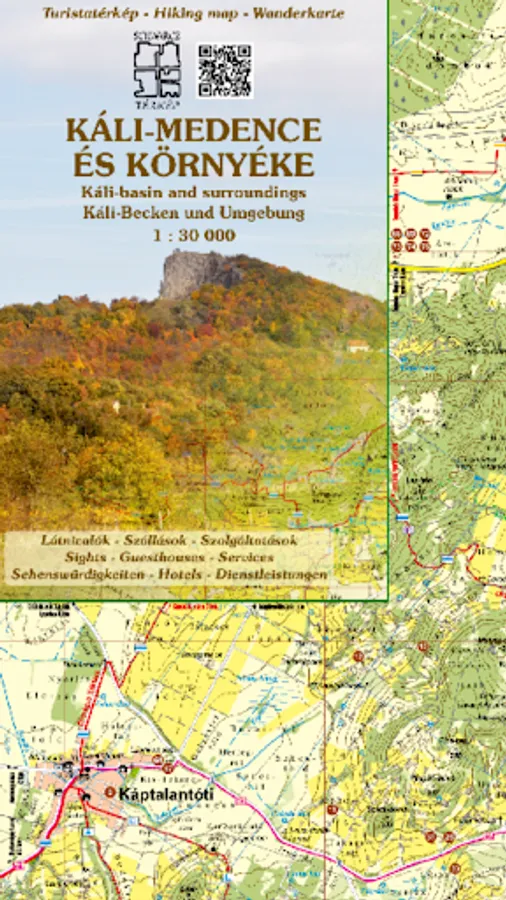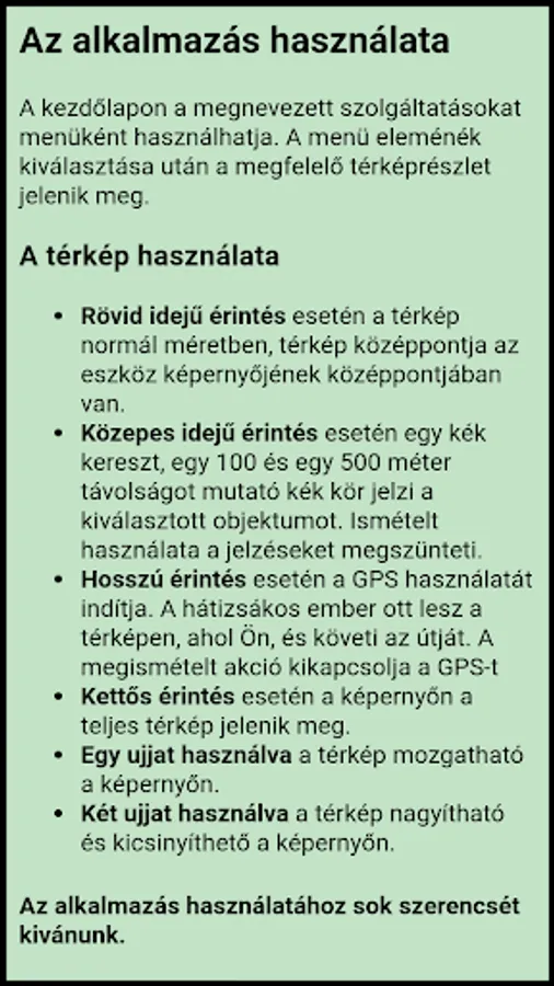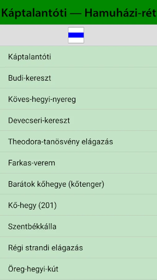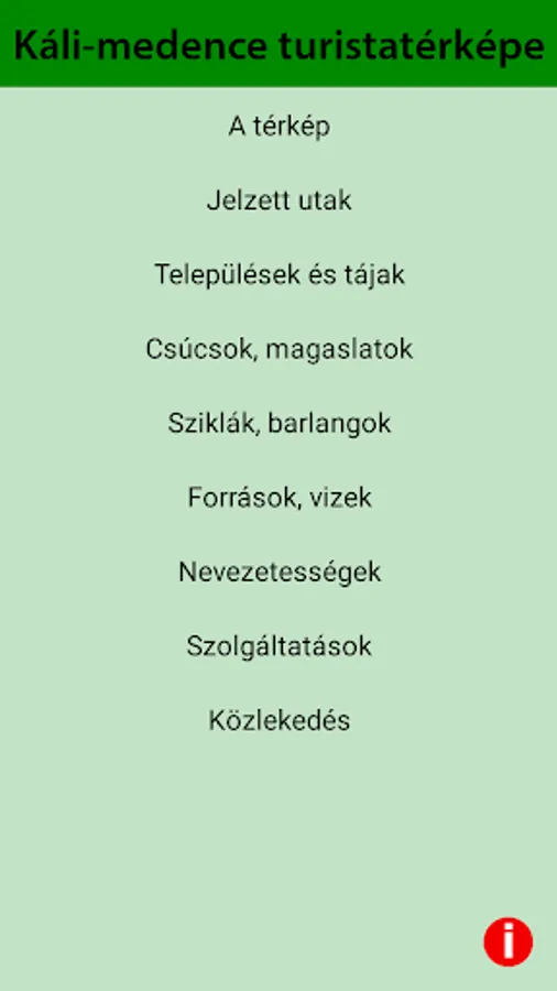 The application shows a detailed map of the Kali Basin where the location of each object can be selected using a menu system. Objects can include settlements, rocks, waters, peaks, marked (tourist) routes, landmarks. The selected object is shown in two concentric circles on the map. The map shown on the phone can be moved, zoomed out and reduced. The finger (s) are displayed by pressing the "i" button.