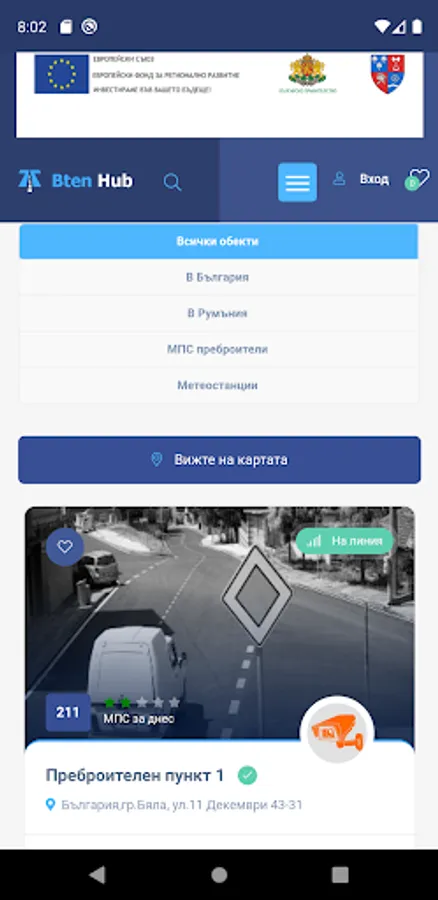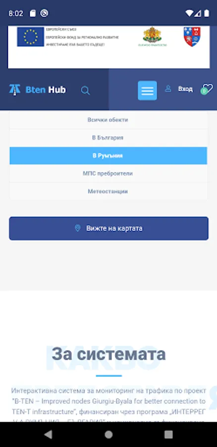 Interactive traffic monitoring system under the project "B-TEN - Improved nodes Giurgiu-Byala for better connection to TEN-T infrastructure", funded by the program "INTERREG V-A ROMANIA - BULGARIA" and national co-financing