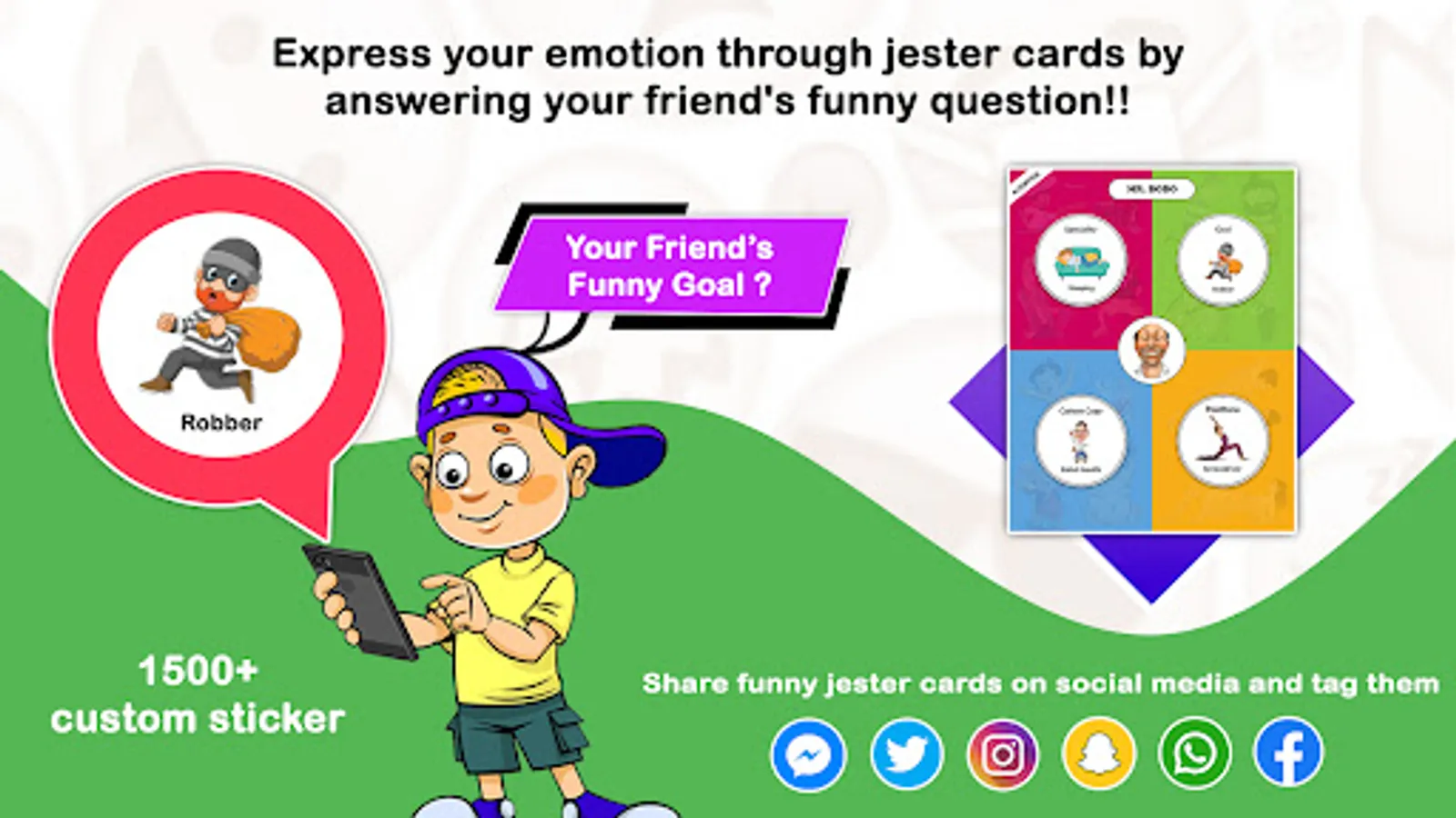 Select funny various backgrounds and create a laughable card. Share the jester card with your friends, family, Colleagues, and others. Trend a #Jester.