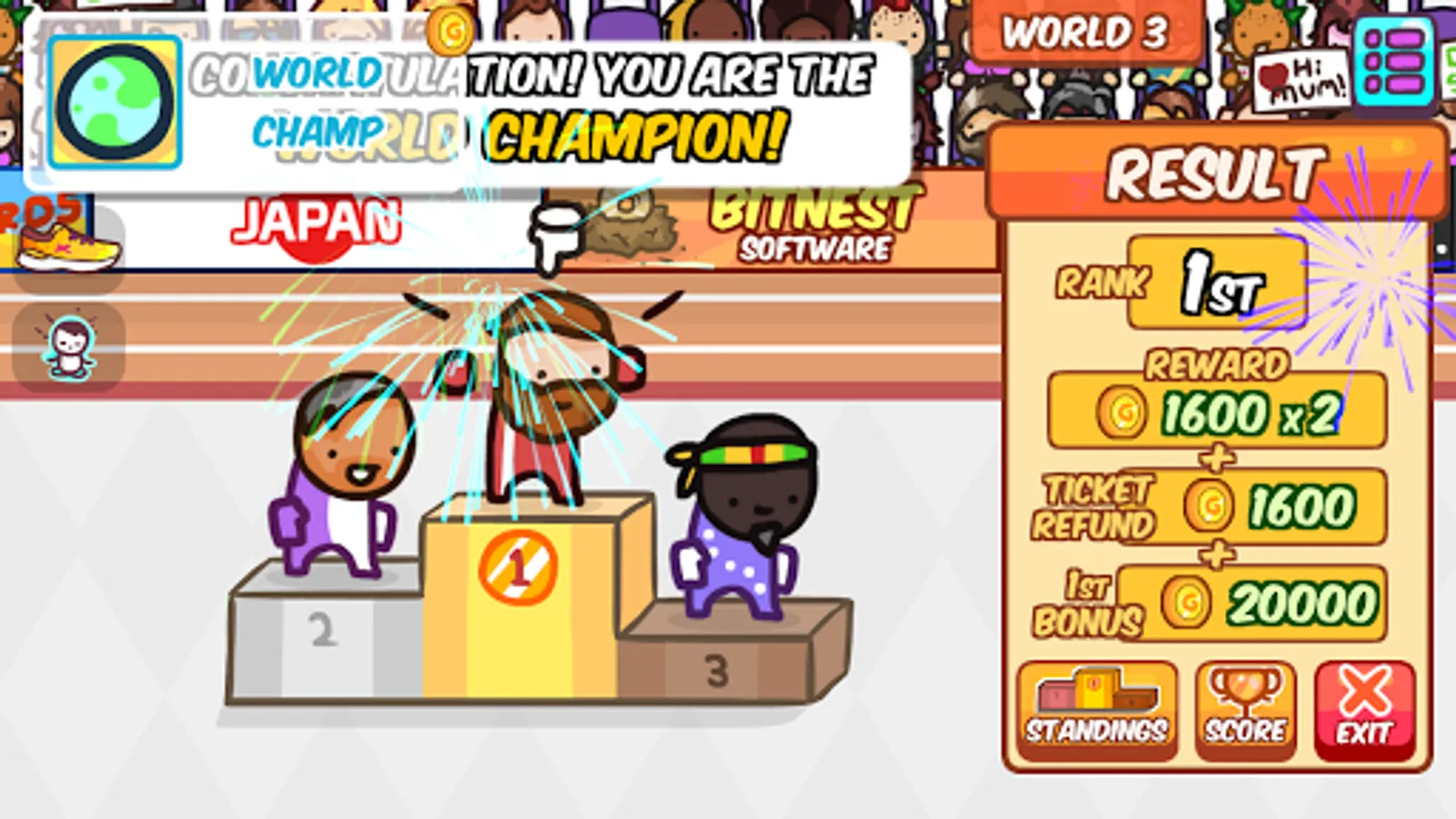 - Podium Run Arena mode (How many matches can you win in a row?)