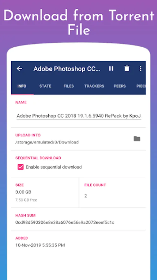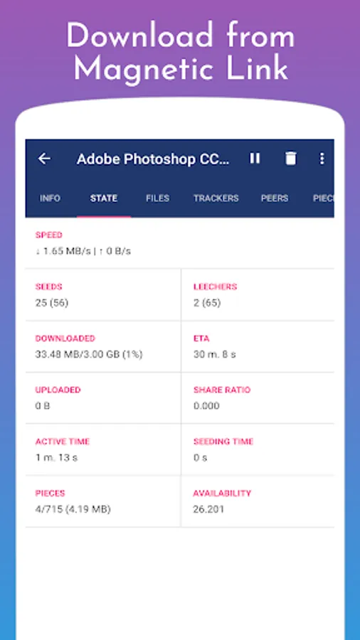 This app is designed to be used in a simple and immediate way, just import a torrent file or paste a magnet link and the download will immediately start. With only one app you can download videos, movies, music, ebooks, pictures, ZIP archives, Software, movies, apk, app , video, audio, android app, Linux software, mac os software, ISO images and any other files from the Internet!