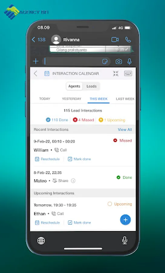 Berisi list agent yang dimiliki ARE, dengan informasi funnel performance dan aktivitas sales agent.