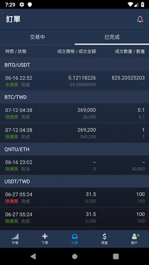 - Market Overview: A full view of all of BitoPro’s listed tokens and real time prices.