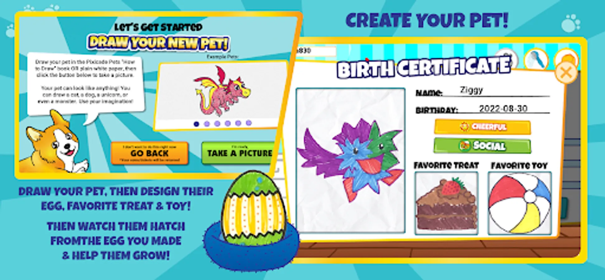 *DESIGN a custom egg, treat, and toy for each of your pets