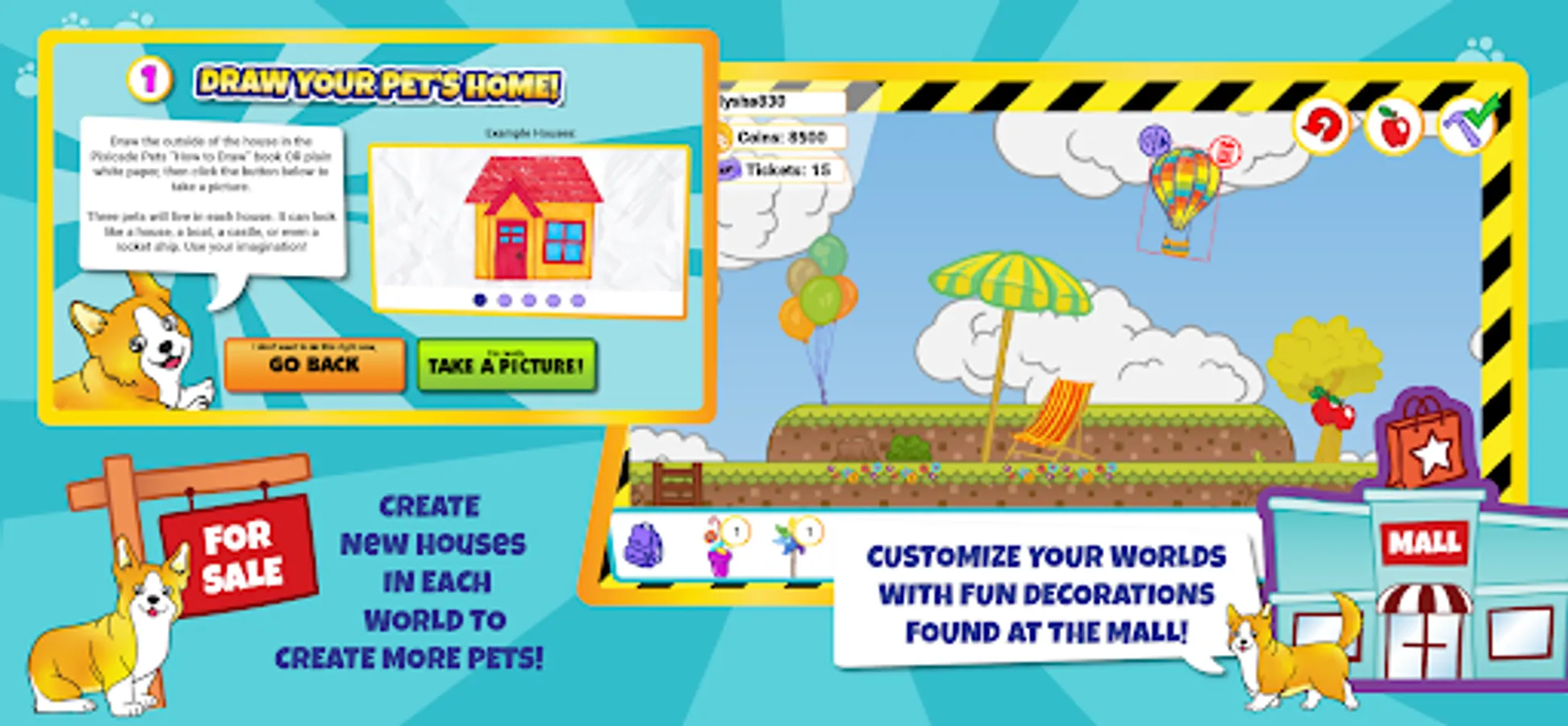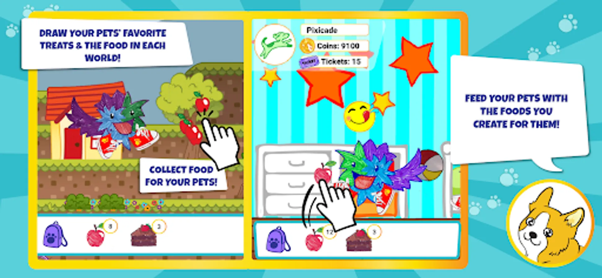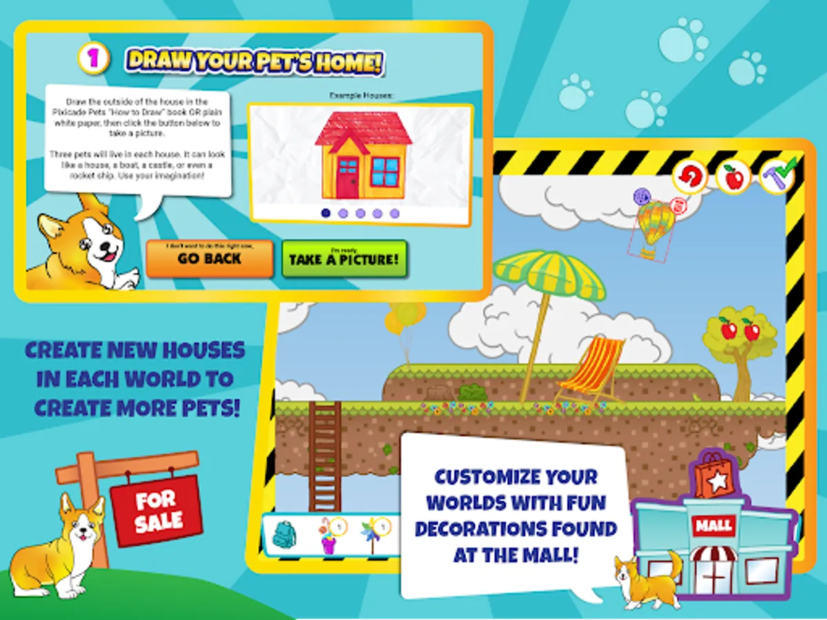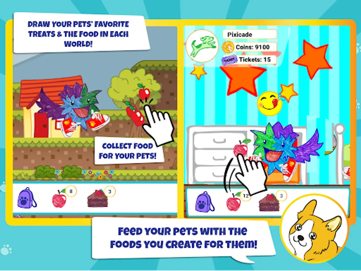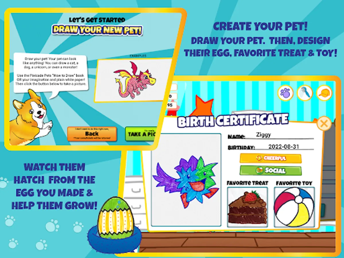 Just DRAW your Pets and their supplies, SNAP a picture in the Pets App then PLAY and CARE for your own amazing world of Virtual Pets!