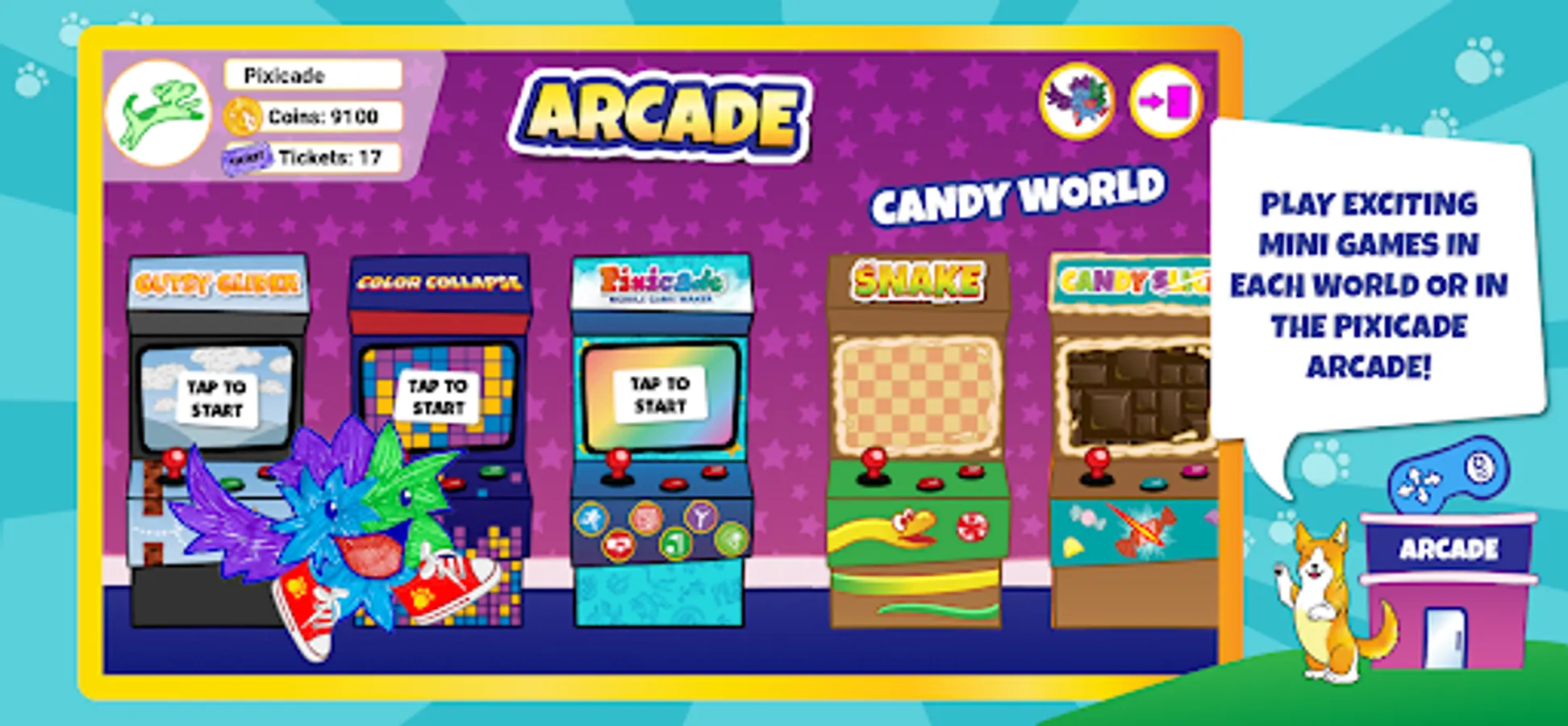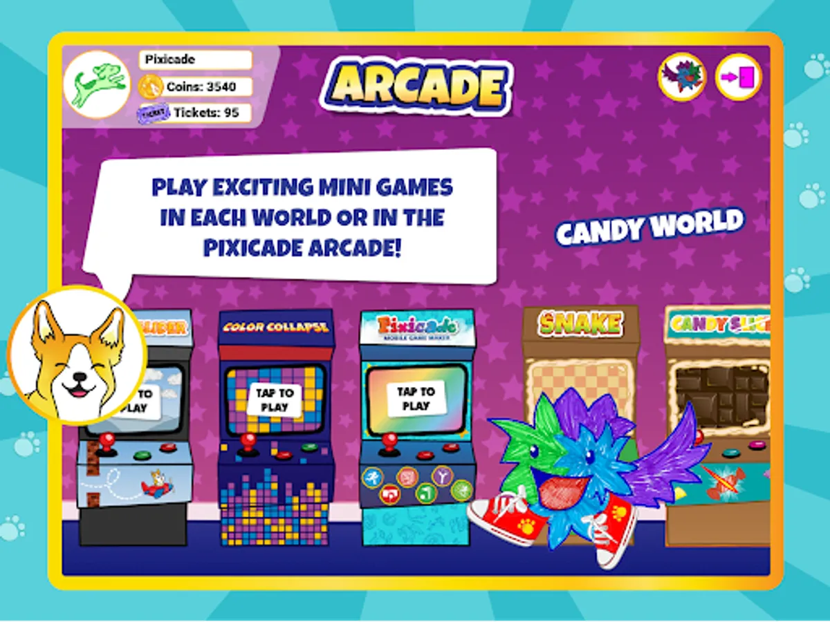 * Connect to the Pixicade Mobile Game Maker Arcade and play exciting Pixicade games with your Pets
