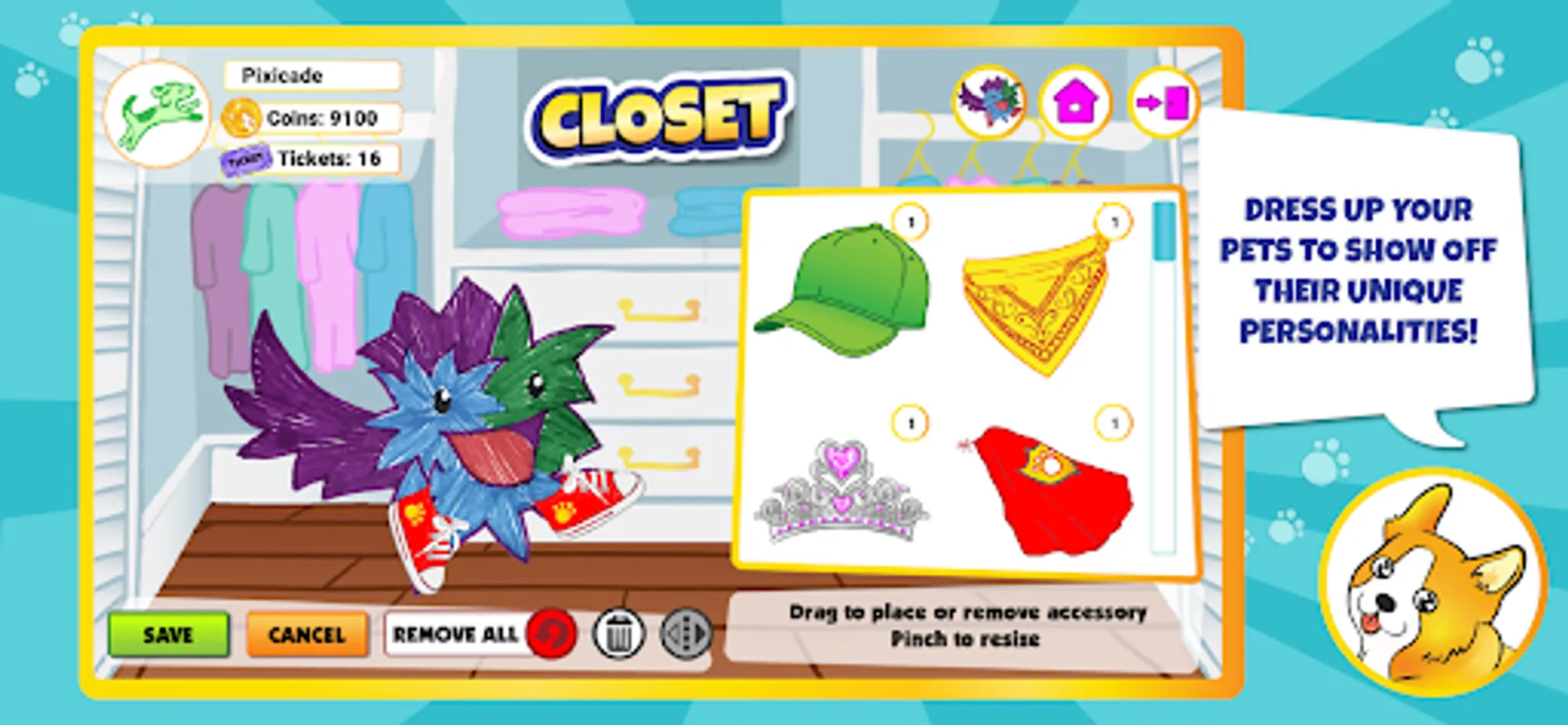 *CUSTOMIZE your pets’ personalities, houses, and worlds
