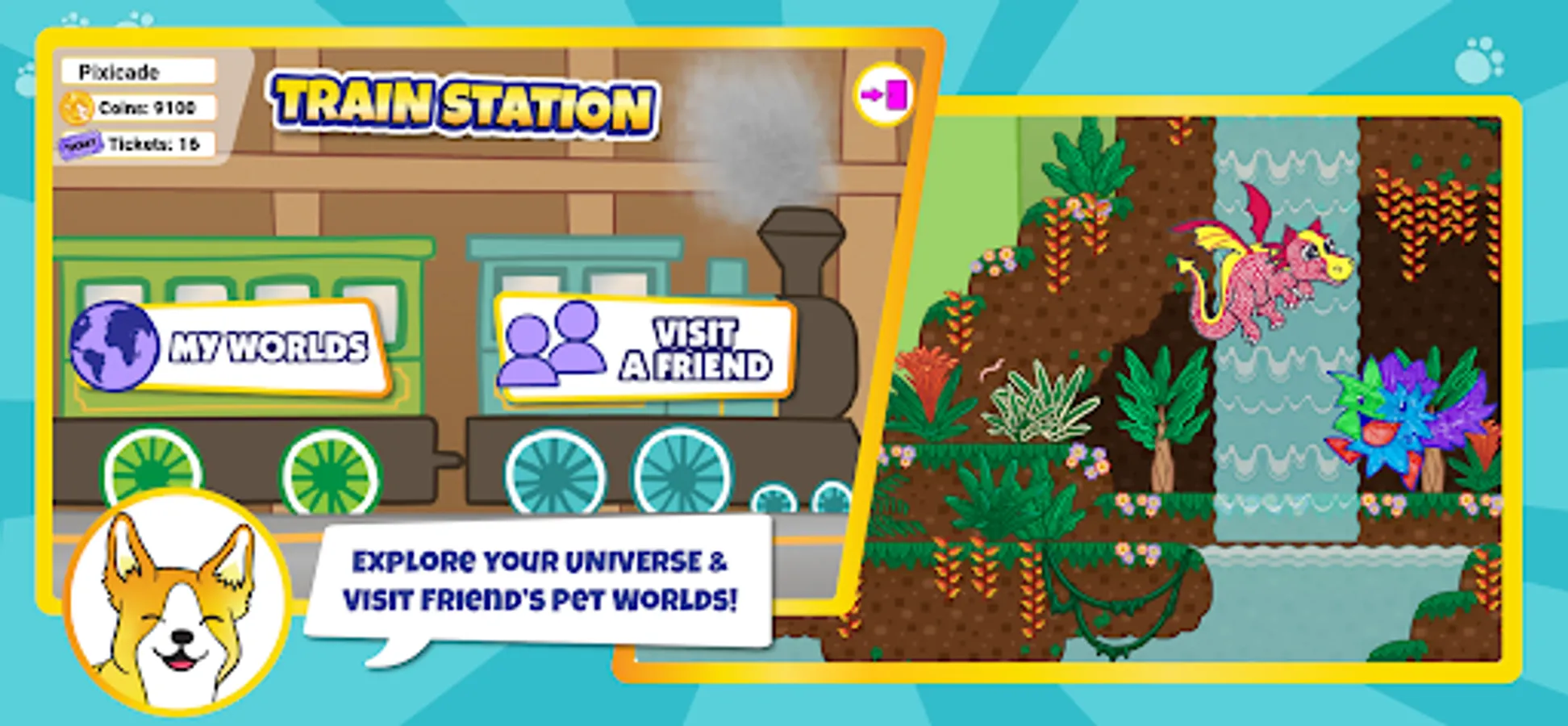 * Travel to friends’ worlds for pet play dates