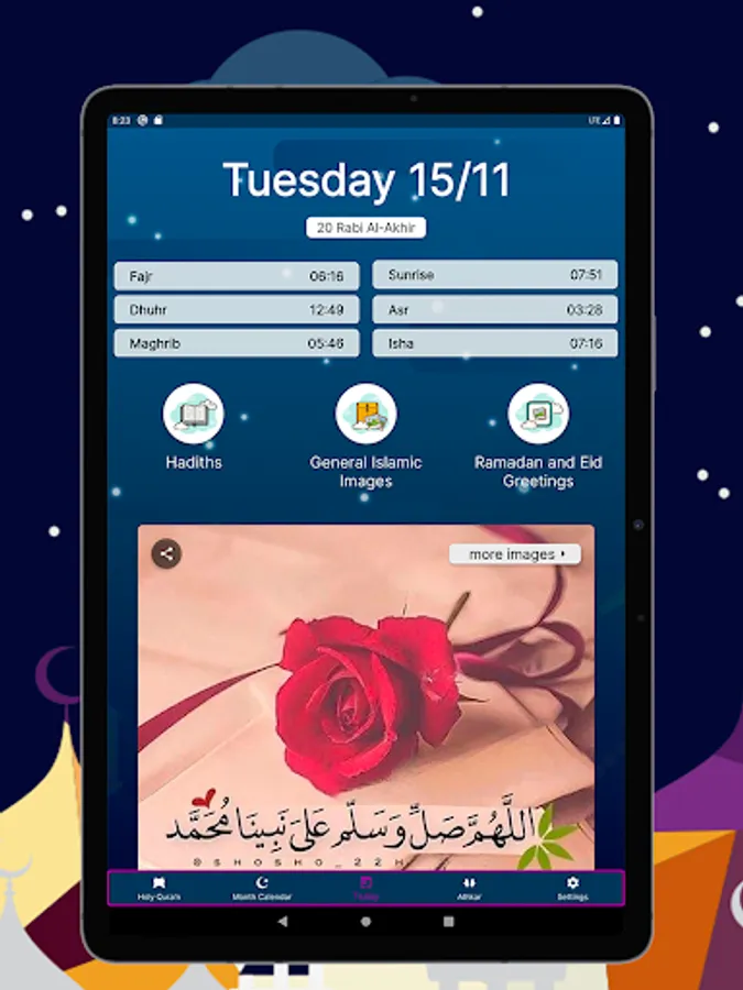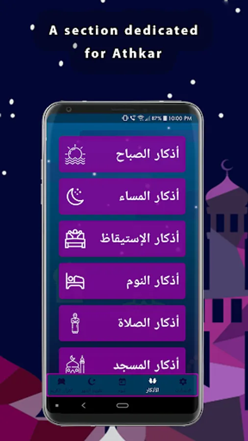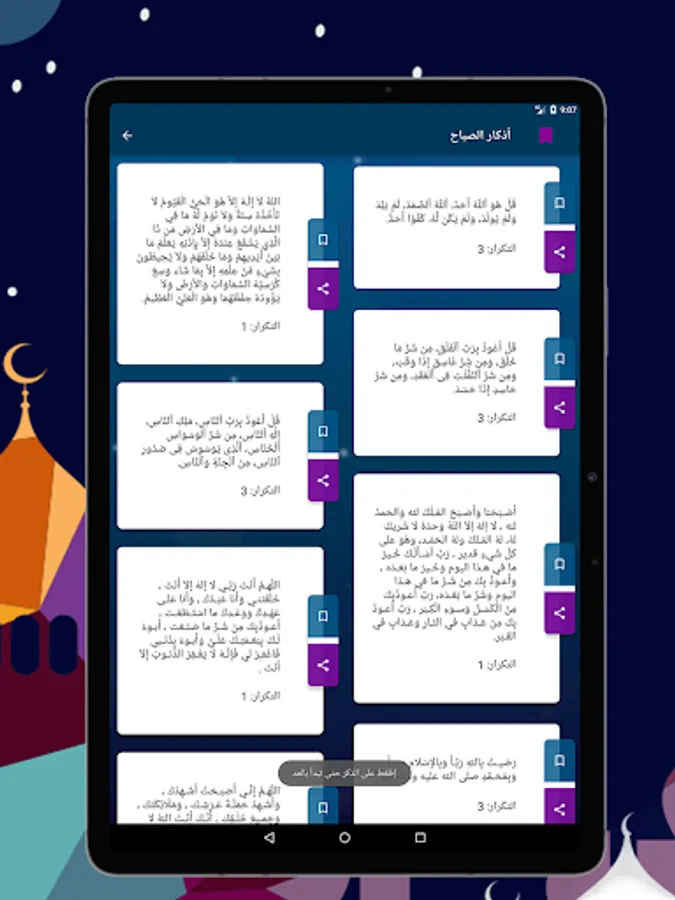 - The app also contains a collection of daily Athkar that you can read, save and share with others.