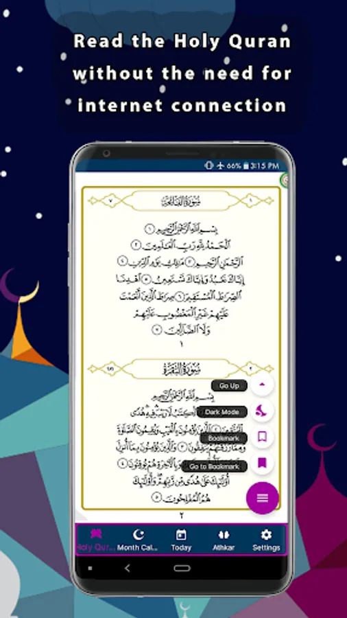 - You'll be able to read the holy Quraan directly from the app, and you can save the page you're reading to be able to go to that page and continue from where you left at any time. and this section can function normally even without an internet connection.