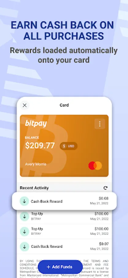 Important: We've temporarily paused BitPay Card applications while we improve the crypto debit card program. Join our waitlist online at bitpay.com/card/ to get updates.