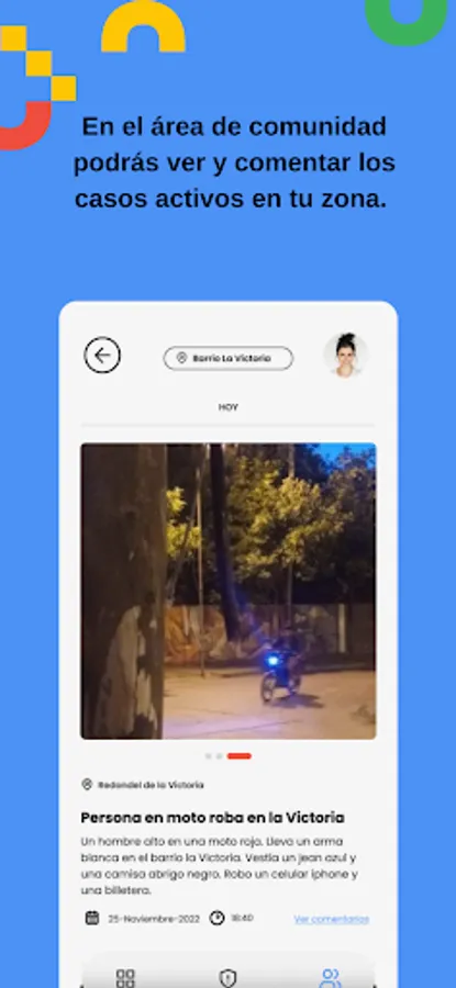 It allows you to report accidents that occur in your community, you can also request help immediately, users in the area can be informed of what is happening and keep them alert and safe.