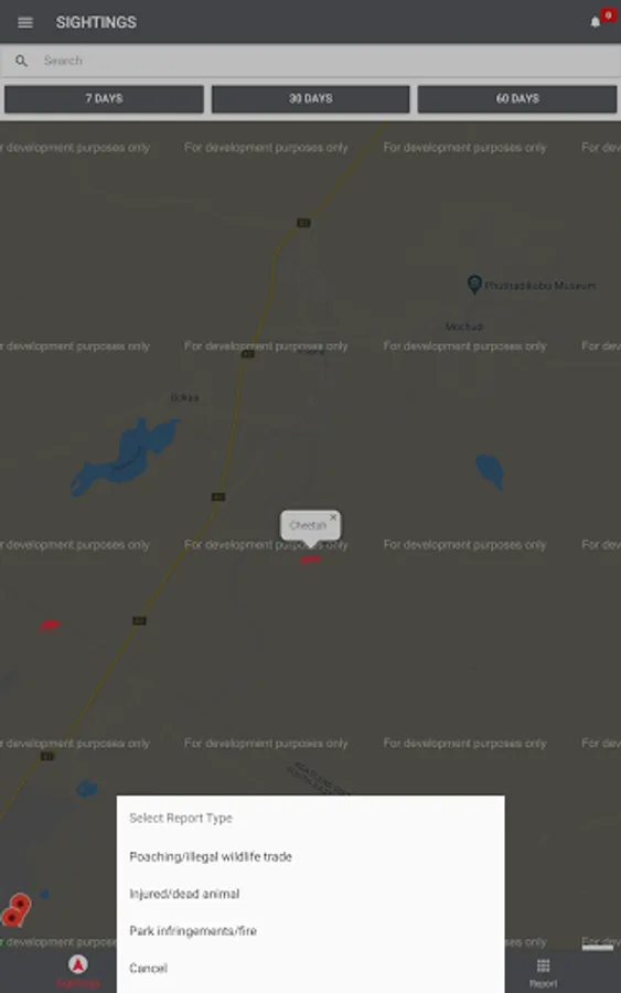 A mobile tracking app that addresses problems facing modern conservation: human-wildlife conflict, benefits to local communities, wildlife data collection, wildlife poaching and the illegal wildlife trade.