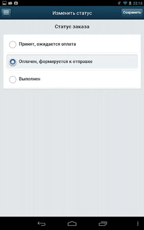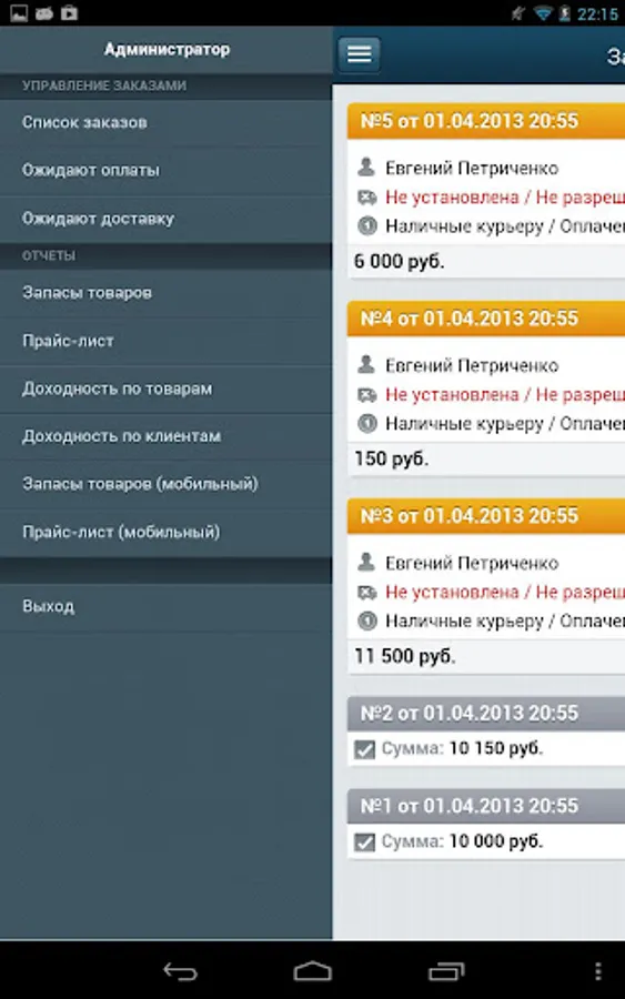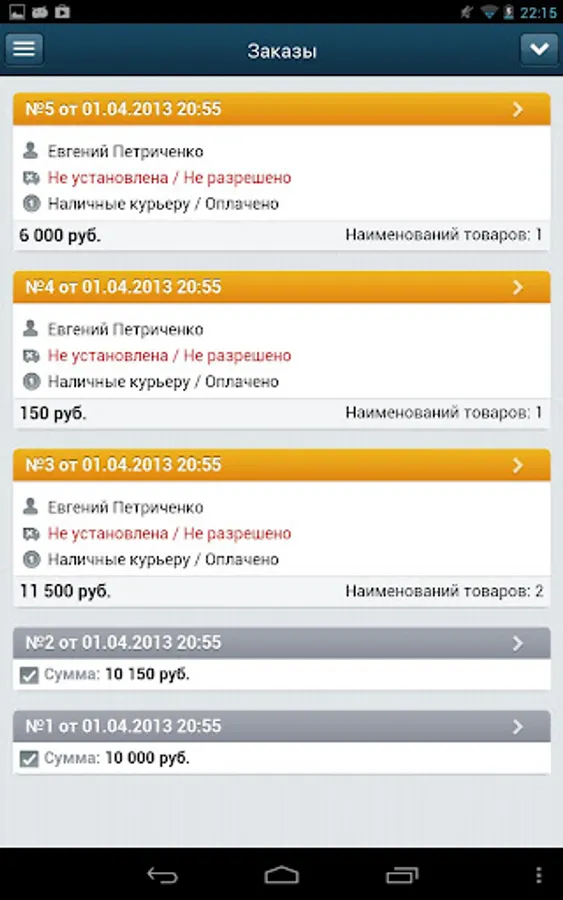 Install the app, connect your online store (established on the basis of "1C-Bitrix Site Manager") and manage customer orders. All the information you'll get in one touch. Available in the application: