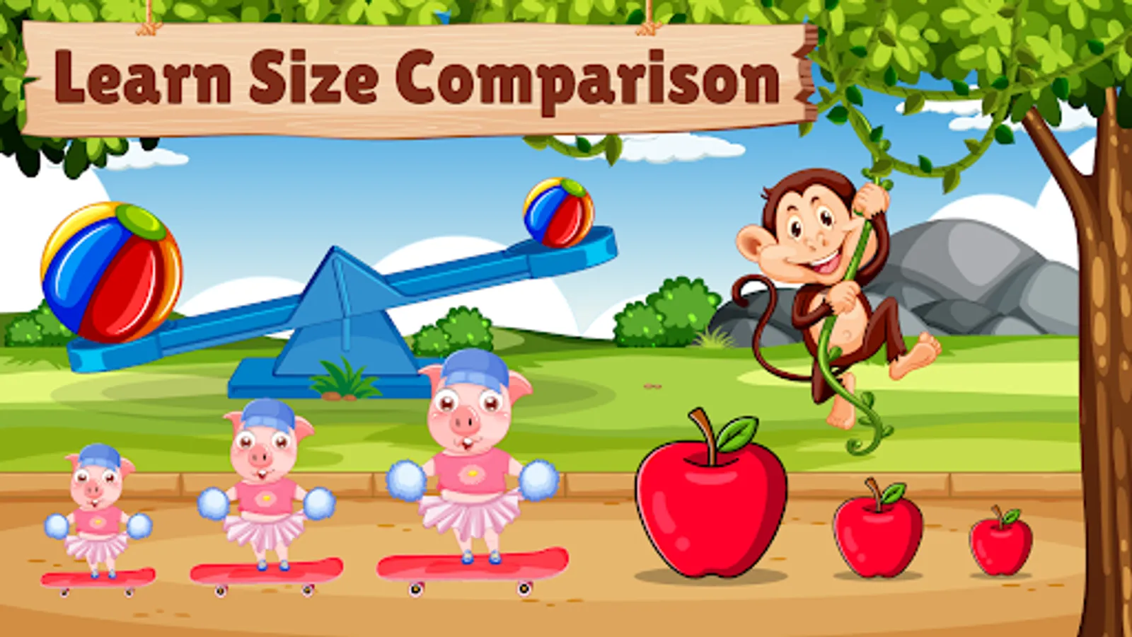 Kids need to select the object per their given size by comparing them with each other to learn comparison skills. Attractive colors, patterns, and an animal theme are used for the kids to play comparison activities by playing the game in different variations.