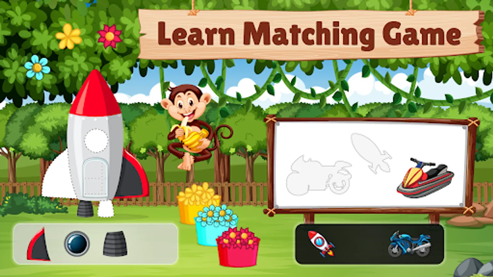 Engaging and innovative matching play designed to facilitate children's learning and development. Matching activity by arranging the different shapes, color patterns matching, and household objects matching for kids better learning.