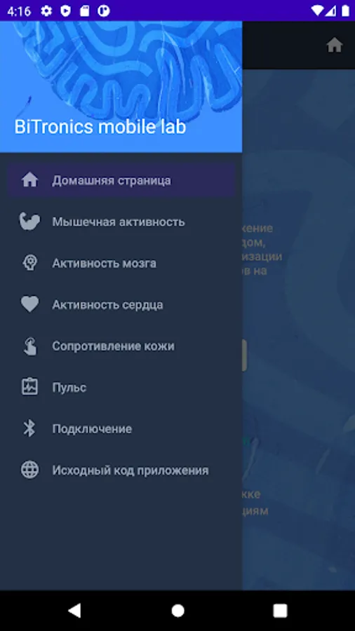 BiTronics mobile lab is an open source application for visualization of bioelectrical signals (EEG, EMG) on the Android platform
