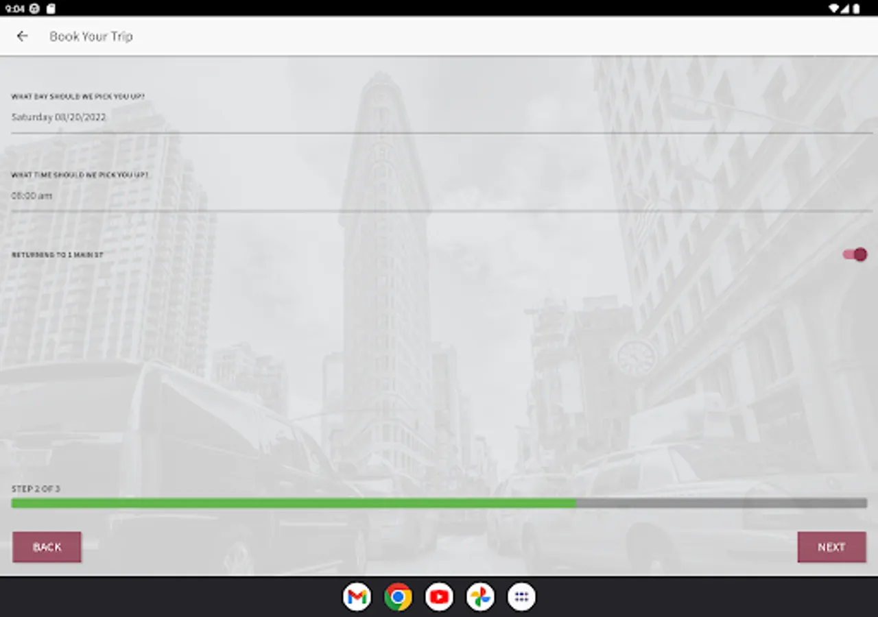 This app connects to Contemporary Transportation to let you book new trips, manage existing trips, and view live vehicle information for all your Contemporary Transportation trips.