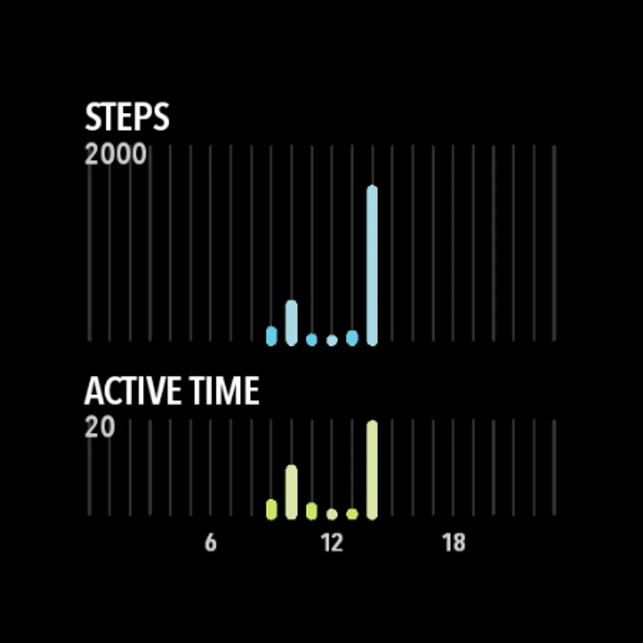 • Track your Steps, Active Calories, Distance, and Active Time;