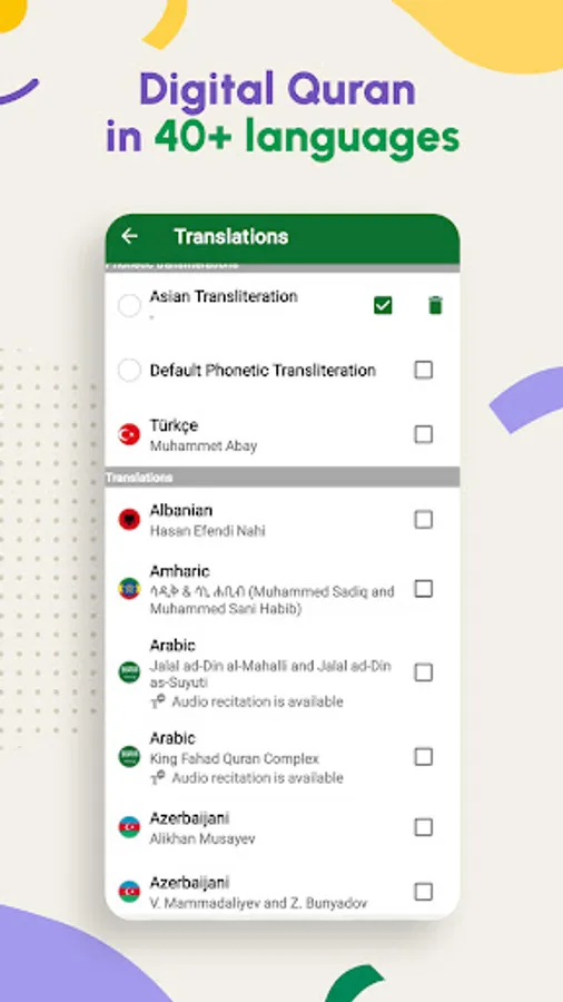 Experience Muslim Pro and the Quran in your preferred language. Translations available in Bahasa Indonesia, Bahasa Melayu, Deutsch, English, Español, Français, Italiano, Nederlands, Português, Türkçe, العربية, اردو, русский, 简体中文, 日本語, and ภาษาไทย.