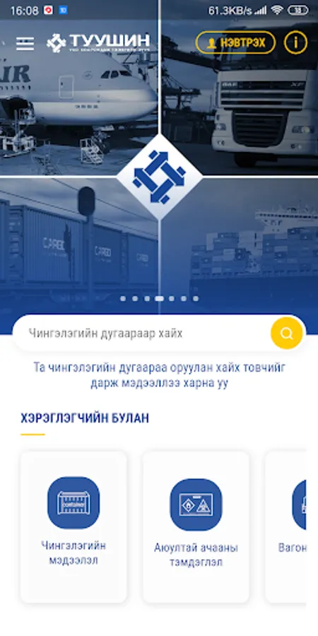 Туушин ХХК-ийн харилцагчид нарт зориулсан ачаа тээврийн програм хангамж.