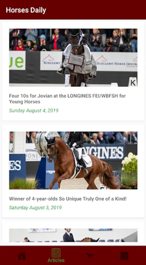 HorsesDaily.com (est. 1997) is one of the oldest websites on equestrian sport. Bringing news, show reports, training tips, horses for sale, equestrian real estate and media marketing for the equestrian world.