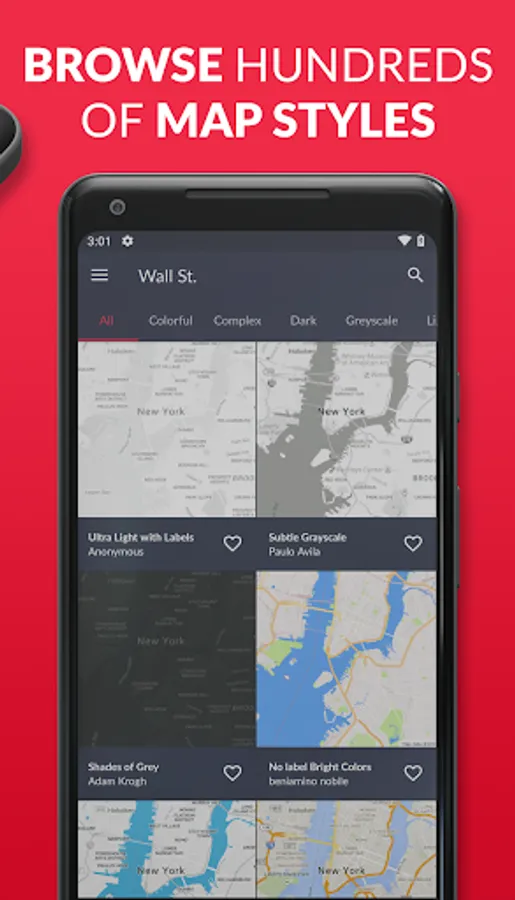Browse through thousands of map styles. There are various categories to choose from, including light, dark, colorful, greyscale, monochrome, and more. You are guaranteed to find a style that suits your taste, and device’s theme.