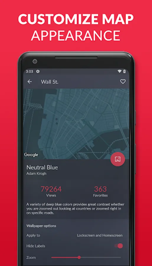 Welcome to Wall St. – the wallpaper app that displays beautiful, stylized street maps that automatically updates with your location. Wall St. periodically updates your background to display HD street maps that look great on any device.