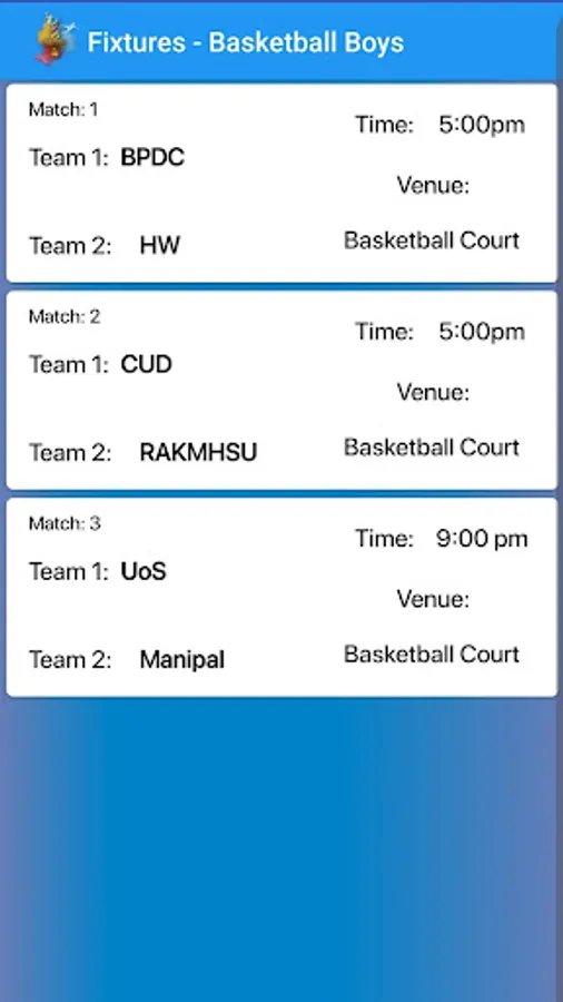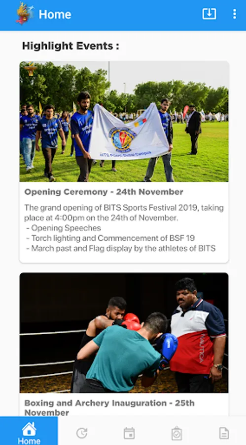 2) Match Fixtures - Visitors and Participants can check their respective sport's match schedule right on the app, including sports such as Football, Basketball, Archery, Boxing, and more!