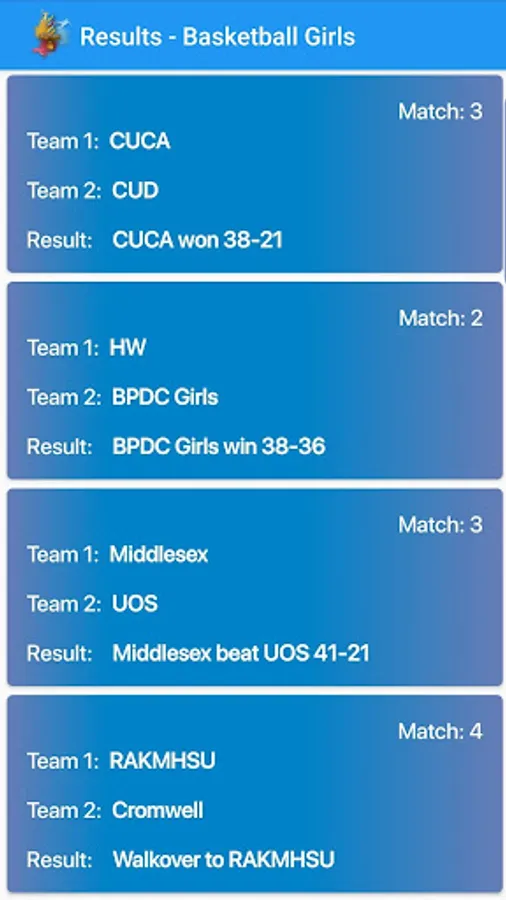 3) Results & Scores - View the results and scores of all of the matches that have taken place