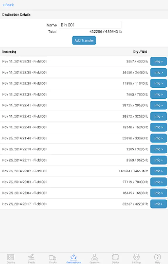 * Monitor cart weight remotely from tractors, combines or trucks within 400'
