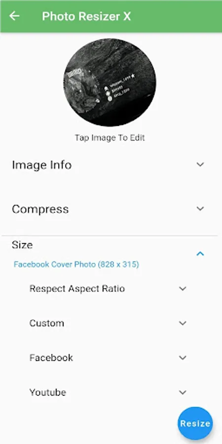 Photo Resizer X is the best choice if you are having trouble setting large Photos on your social media because of the size limitations, all you have to do is choose the profile picture option in the resolution selection list, and Photo resizer will resize your Photo into the optimal profile Photo size…