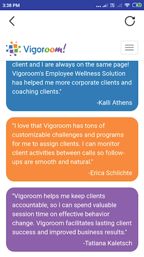 This app is for the clients of coaches who use the Vigoroom coaching platform and for the employees of companies who use the Vigoroom Employee Wellness Solution.