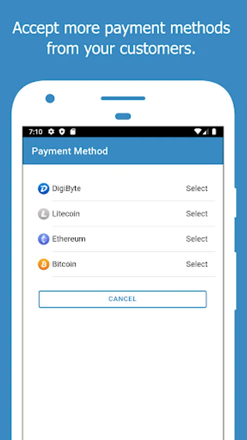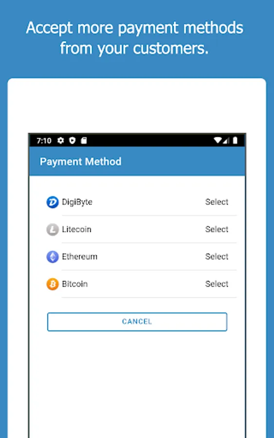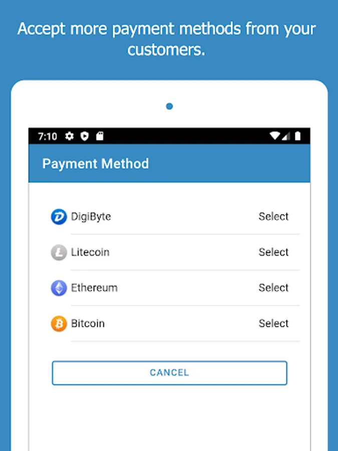 • Accept: Bitcoin, Ethereum, Litecoin and DigiByte