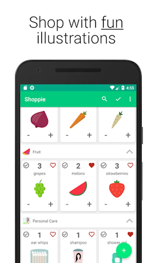 Shoppie is a fun and handy way to plan your grocery shopping. It has over 100 colourful illustrations and we'll be adding more in the future.