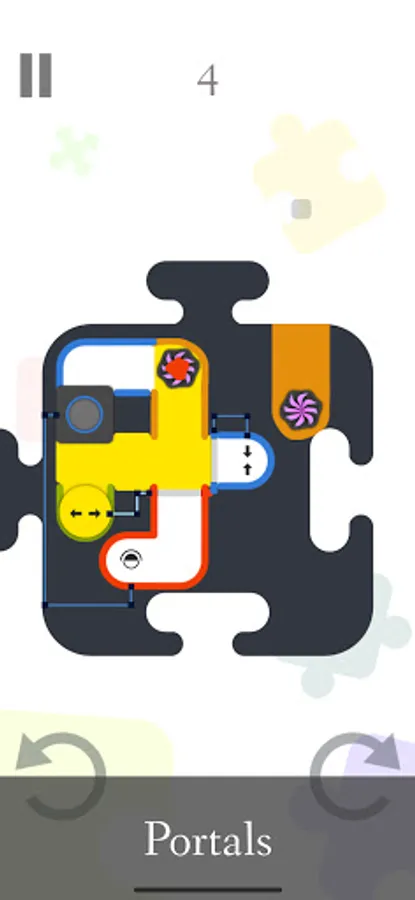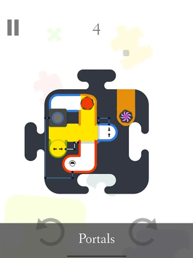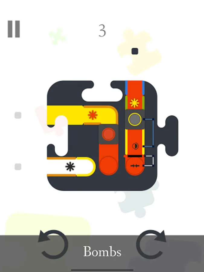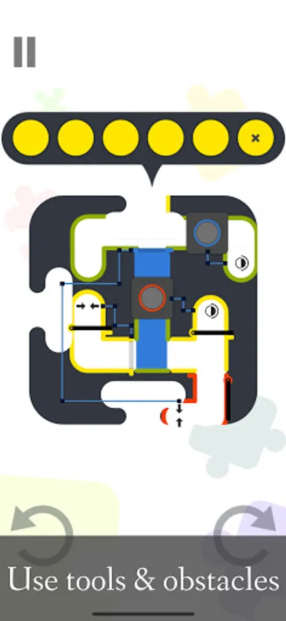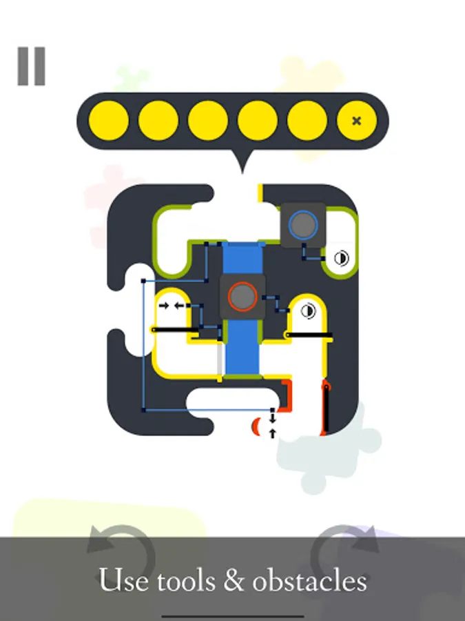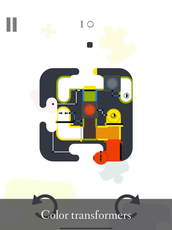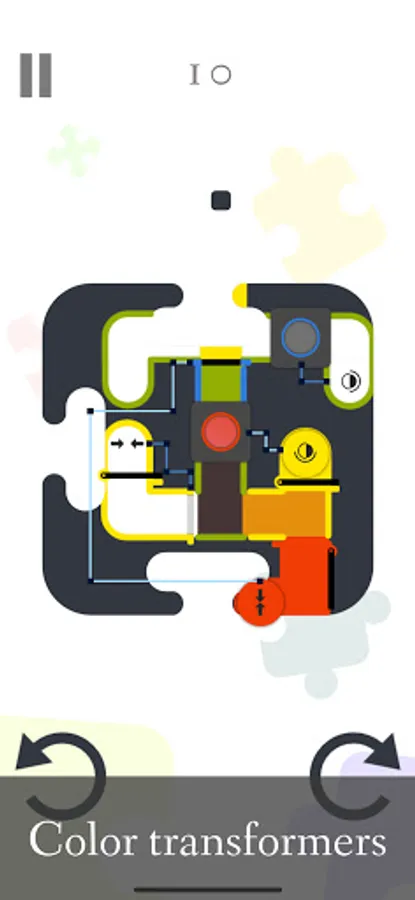 Bunt is a puzzle game in which you use colorful balls and gravity to solve interesting puzzles. In order to win, you must paint tunnels in the colors of the tunnel borders. When a ball falls, it leaves a trail behind it that paints the tunnel in the ball's color. Levels can be rotated either by pressing the rotation buttons or by swiping the screen. Colors can be combined to yield new colors (if a red ball traverses a yellow painted tunnel the resulting color will be orange). Besides these mechanics, there are also lots of environmental obstacles and tools like: hinged gates, color transformers, sliding gates, wormholes, auto-rotate buttons, mini-bombs and many more.