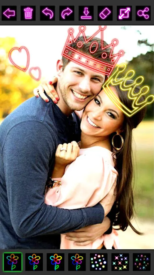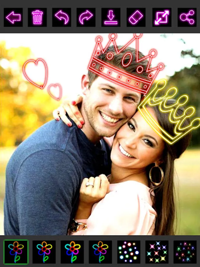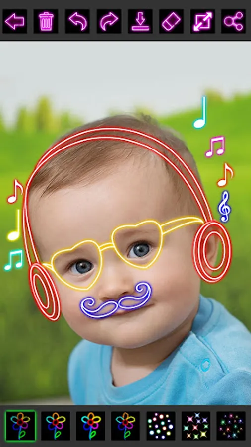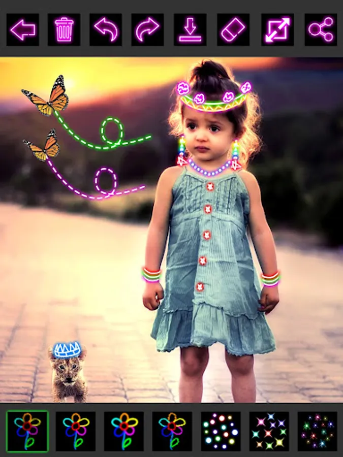 Glow Draw Photo Editor is particularly designed with super easy-to-use painting on canvas or any image. It has various bright colors and different brushes, such as glow, neon, rainbow, crayon, stars etc.