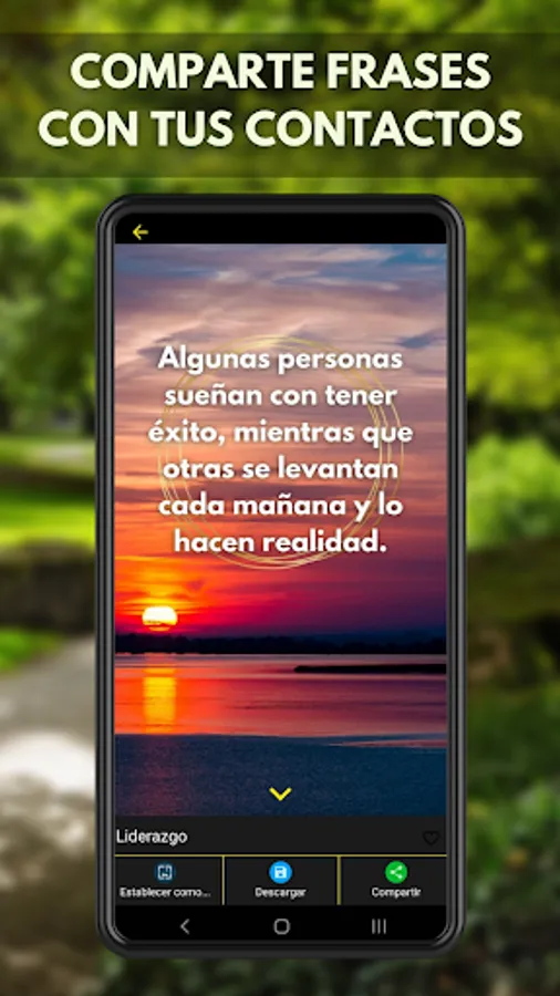 The purpose of the application is for the user to be able to reflect, motivate, cheer up and share with their contacts and social networks, high-resolution images that contain phrases of leadership, motivational, personal success, love, good morning and good night greetings, having among other objectives, to increase and expand the number of phrases and categories that are currently in the application.