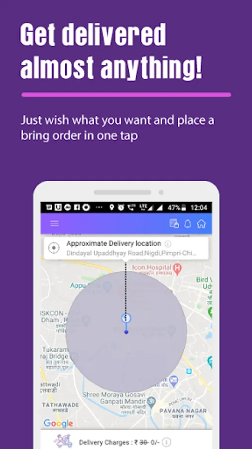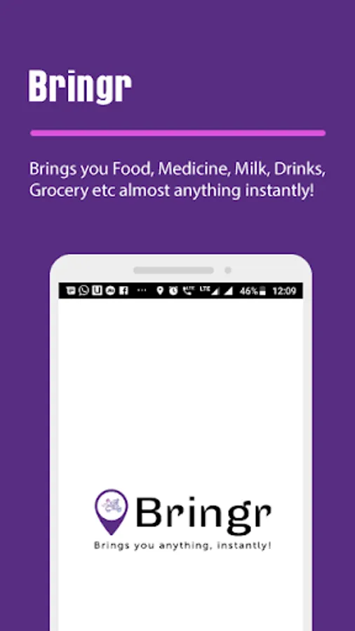 Bringr is a 24x7 hyper local delivery app that delivers anything to your doorstep instantly, possibly in 30-45 minutes. Whether it's food delivery or grocery / milk / medicine or almost anything nearer to you, Bringr is the only easy delivery app you'll ever need.