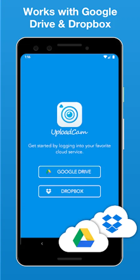 A valid Google Drive or Dropbox account is required to use this app