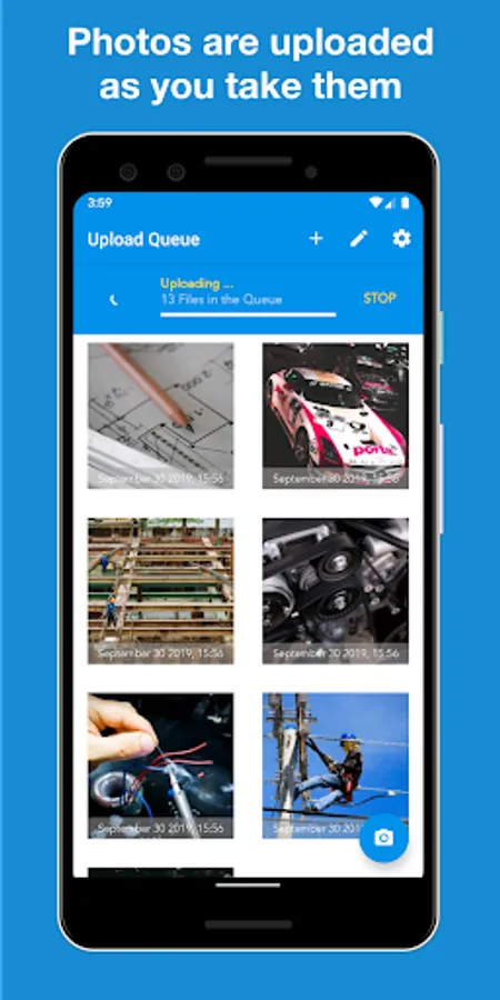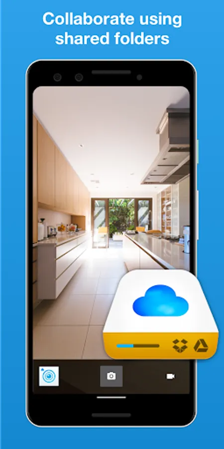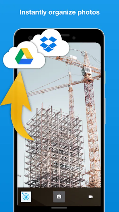 Stop mixing personal and work photos. With UploadCam the photos and videos that you take are automatically stored and organised on your Google Drive, Dropbox or OneDrive account and not on your personal device. This is the perfect camera app for your work!