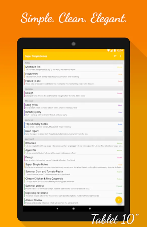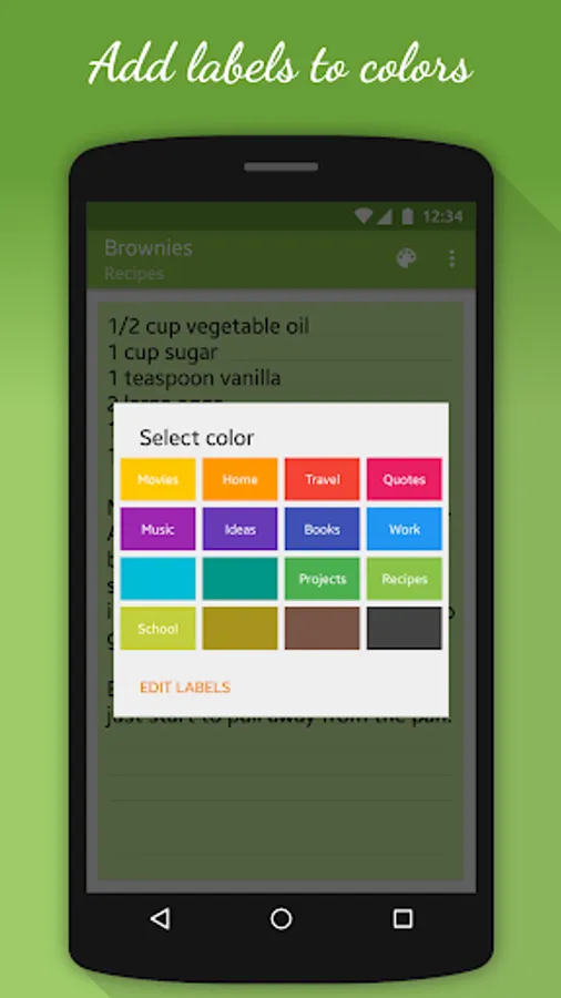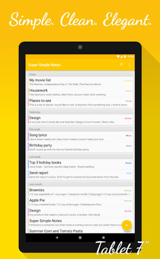 Use colors to organize notes. Optionally add labels to colors. Eight eye catching colors are included, and eight more are available as in-app purchases.