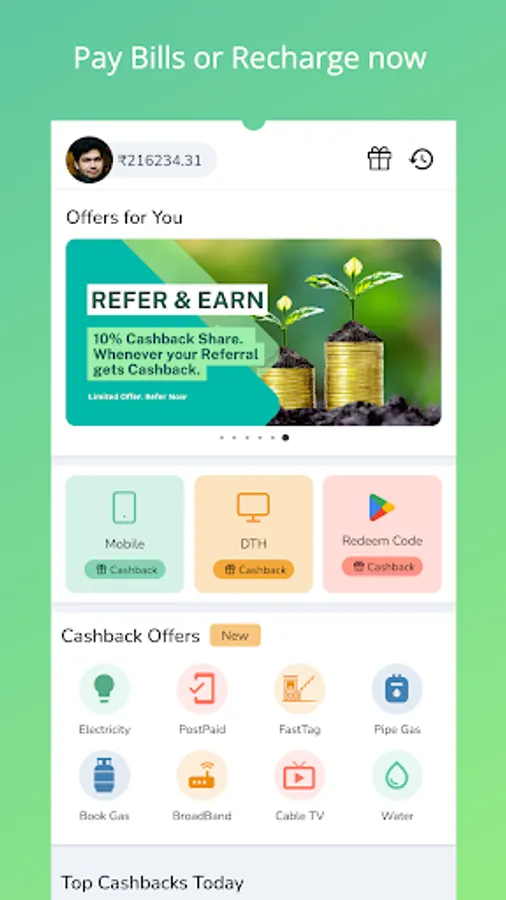 Pay Bills & Earn cashback everytime you pay any bill or recharge. 100% guranteed.