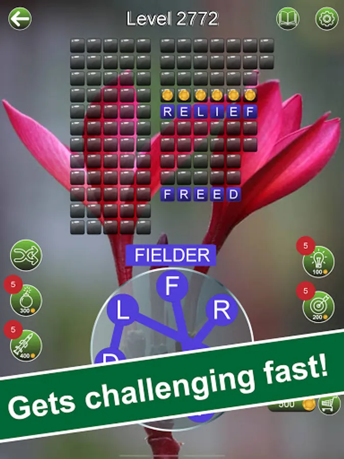 Exercise your brain and with thousands of challenging word unscramble puzzles, set in a relaxing botanical garden of gorgeous puzzle backgrounds. Test your word smarts, unlock new levels and climb the vocabulary ladder.